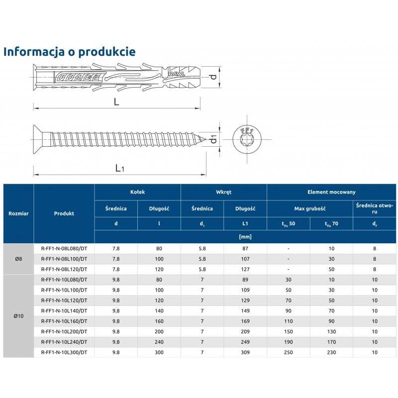 Uniwersalny Nylonowy kołek ramowy z łbem stożkowym i wkrętem zabezpieczonym przed korozją powłokami Delta Tone rekomendowany do szerokiego spektrum aplikacji