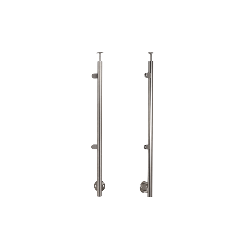 Słupek nierdzewny fi 42,4mm końcowy lewy dla pochwytu fi 42,4mm. Wypełnienie poziome szkłem. Mocowanie boczne powierzchni prostej, Materiał AISI 304,szlif 320. Zastosowanie dla balustrady o wysokości 110cm.
