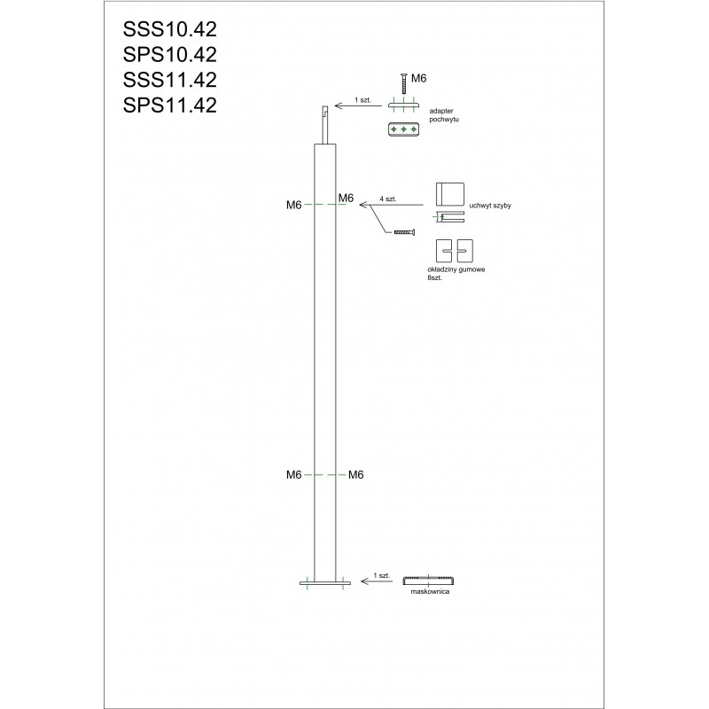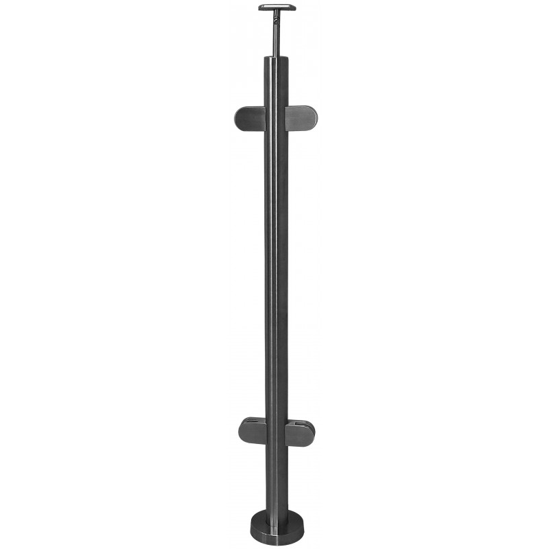 Słupek nierdzewny fi 42,4mm dla pochwytu fi 42,4mm. Wypełnienie szkłem. Mocowanie na powierzchni prostej. Materiał AISI 304,szlif 320. Zastosowanie dla balustrady o wysokości 110cm.