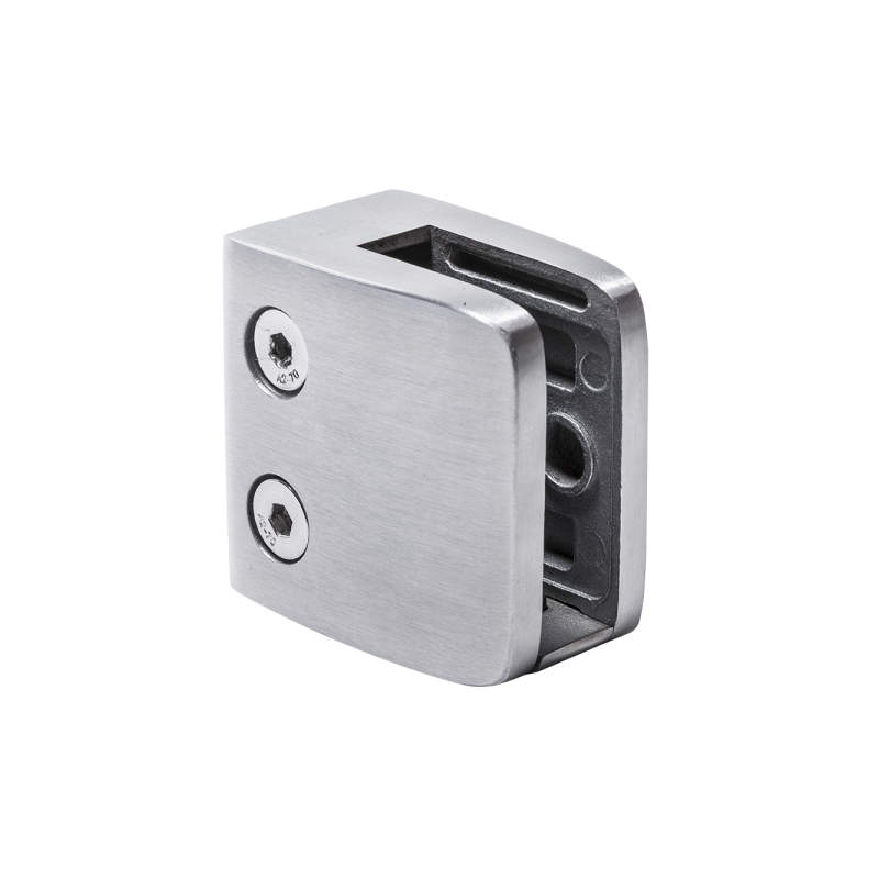 Uchwyt do szkła 52x52x32mm ze wspornikiem, 4XS (AISI 304, PŁASKI, SATYNA)