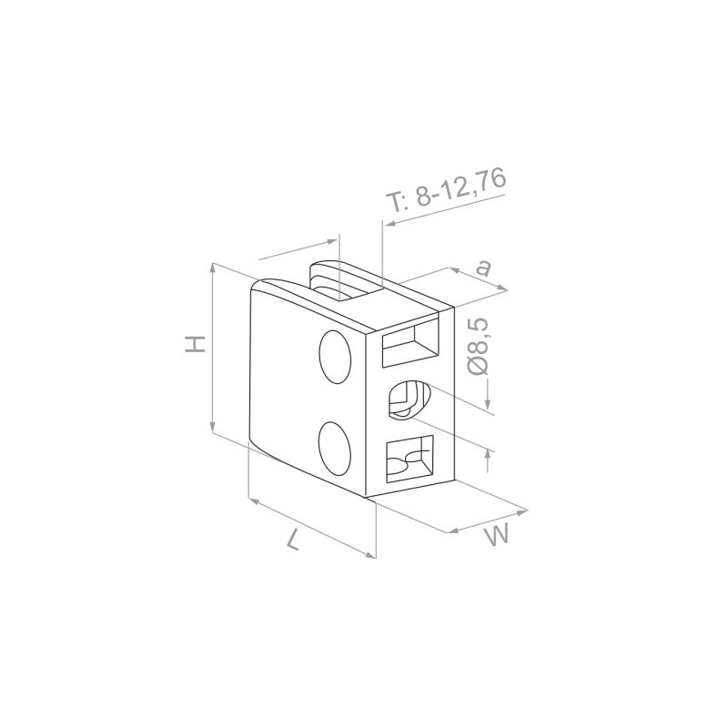 Uchwyt do szkła 52x52x32mm ze wspornikiem