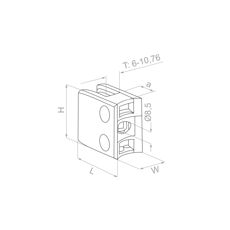 Uchwyt do szkła 45x45x26mm ze wspornikiem, ZXR (zamak, płaski, powierzchnia surowa)