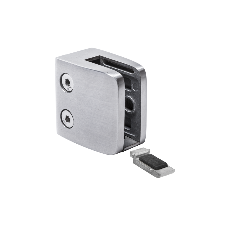 Uchwyt do szkła 67x55x38mm ze wspornikiem 4xS (AISI 304, płaski, satyna)