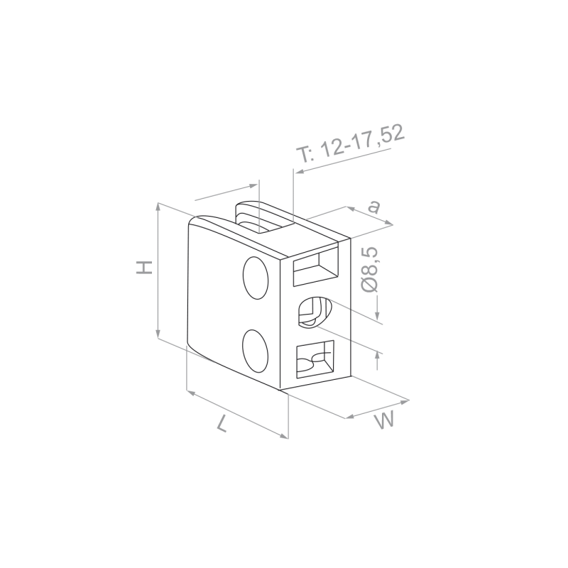 Uchwyt do szkła ze wspornikiem, wykonany ze stali nierdzewnej AISI 304. Sposób wykończenia: satyna. Produkt do wkręcenia, dedykowany do powierzchni płaskich.