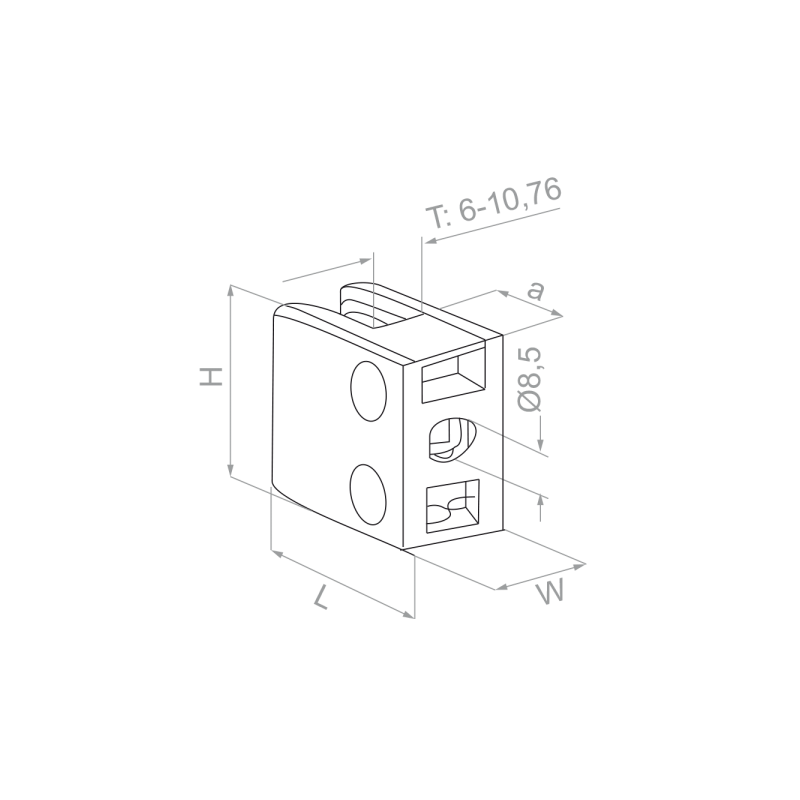 Uchwyt do szkła ze wspornikiem, wykonany ze stali nierdzewnej AISI 304. Sposób wykończenia: połysk / lustro. Wymiary: 45x45x26 mm. Produkt do wkręcenia, dedykowany do powierzchni płaskich.