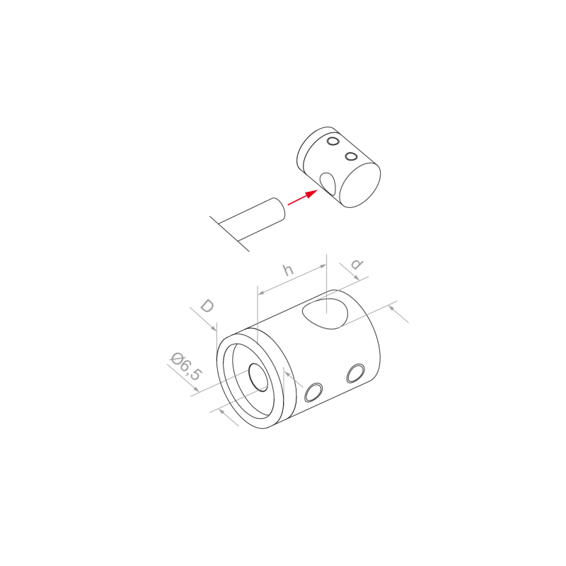 Uchwyt startowy lewy pręta fi 12 do płaszczyzny, 4BS (AISI 304, płaski, połysk)